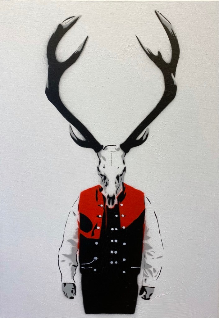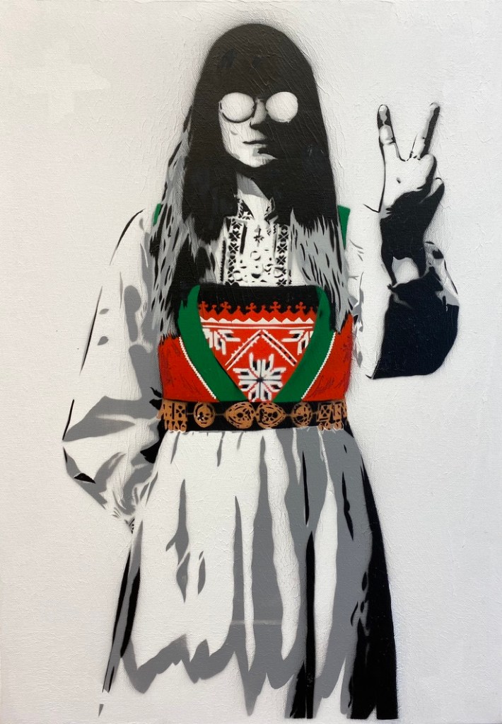 Sjablongkunst på lerret.